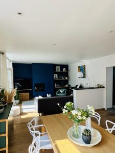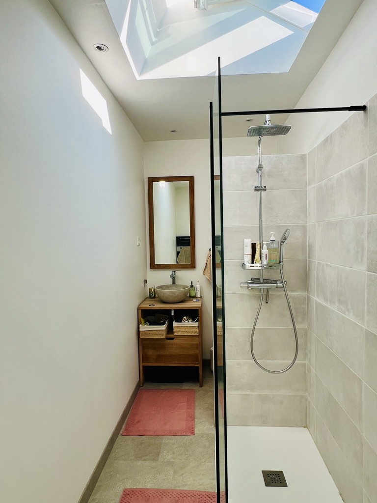 L’appartement se compose au rez-de-chaussée d’une grande pièce de vie lumineuse de 30 m², d’une cuisine aménagée (plaques, four, réfrigérateur/congélateur) + buanderie avec machine à laver.